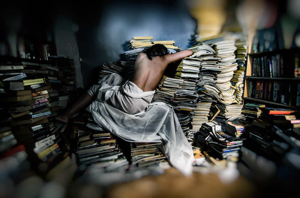 This was a personal project, Mora Books is the book store used by a dear friend, and its aesthetic of accumulation and disorder has always pleased me.